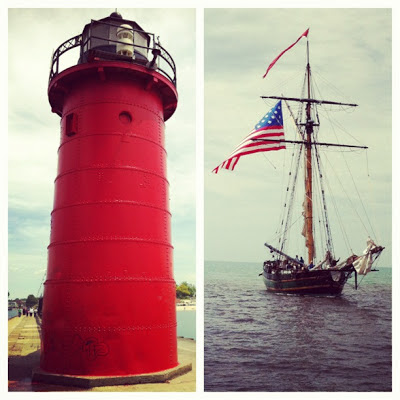 Later that day, we headed to a neighboring town and ate some dinner. After dinner we went and looked at the "lighthouse" on the pier. It was interesting looking and red because that seems to be the theme of Michigan lighthouses.